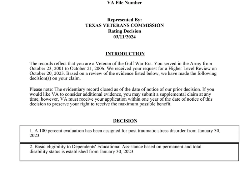 Higher-Level Review, Supplemental Claim, or BVA hearing—chosen specifically for your case.